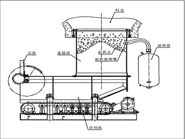 防止在給料機距離倉口較高的時候,連接段內的物料壓實粘結成拱或粘壁